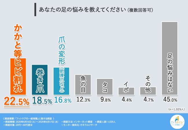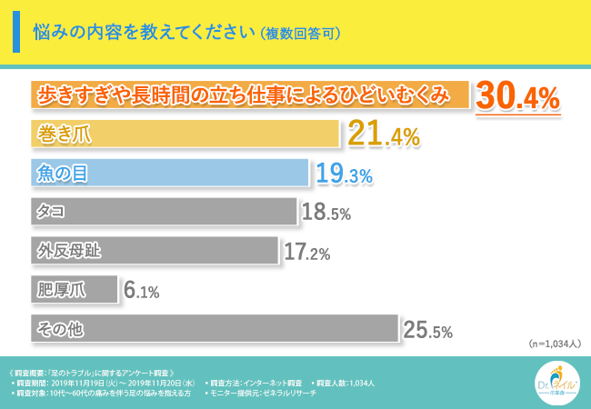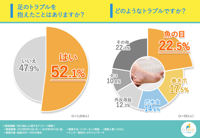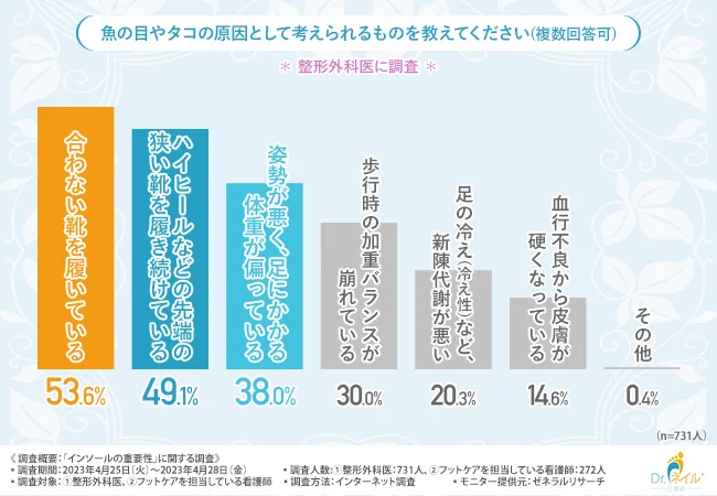 足に関する悩みやトラブルは多くの人に共通するものですが、その実態や原因、傾向はデータや調査によって初めて「見える化」されるものです。